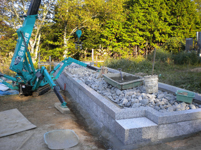 舞台が広いので埋め込み栗石もかなり入りました。